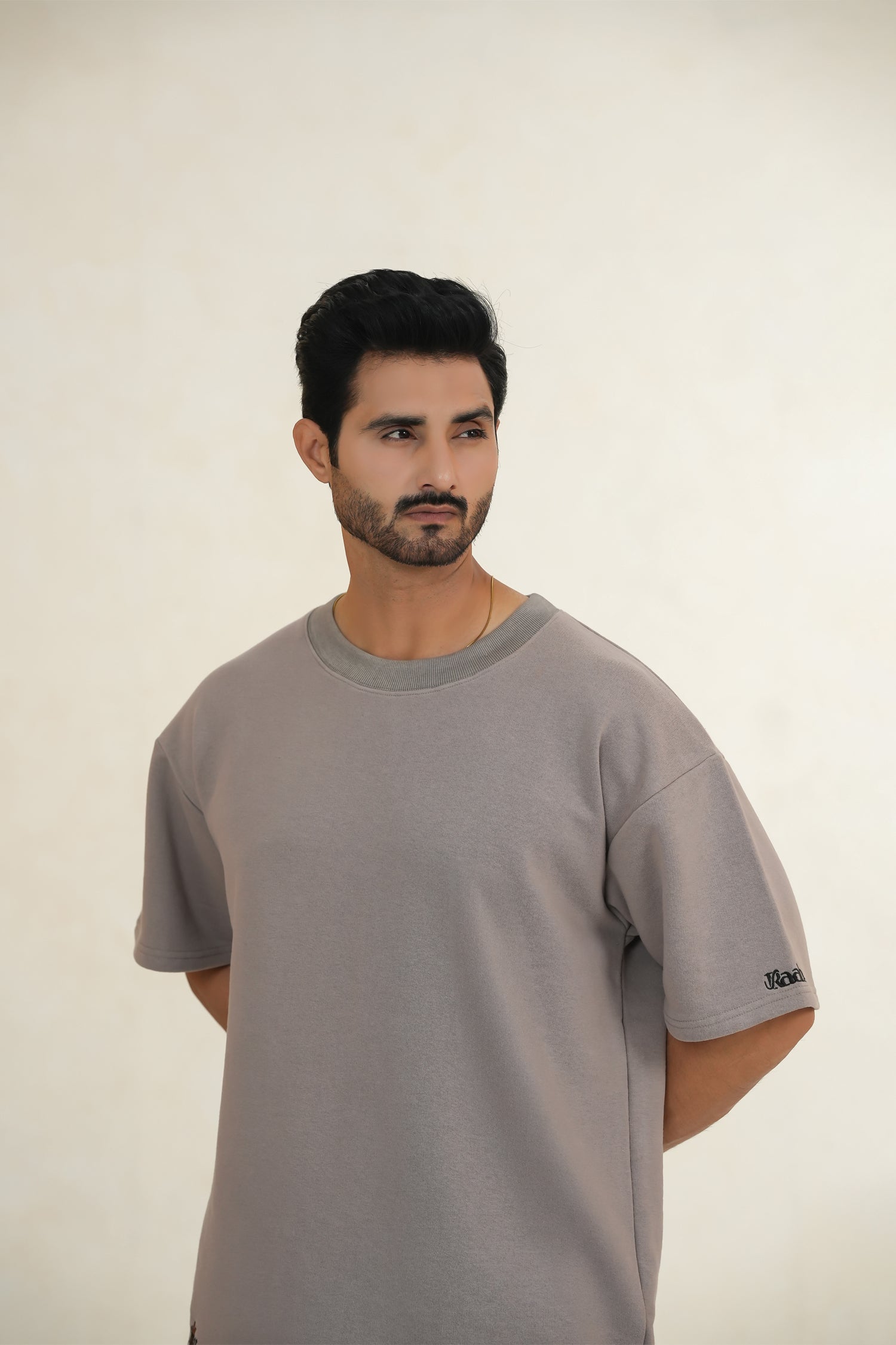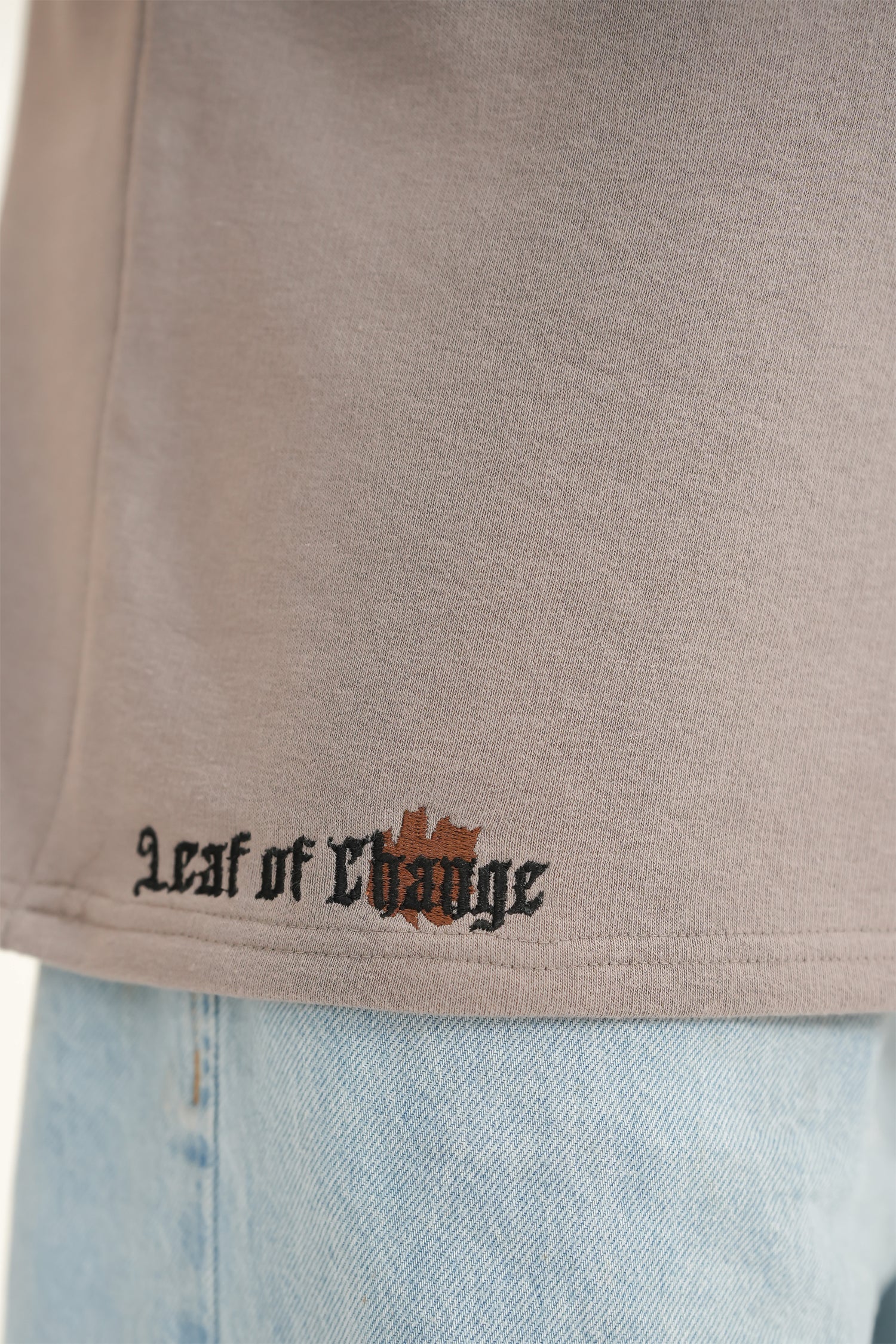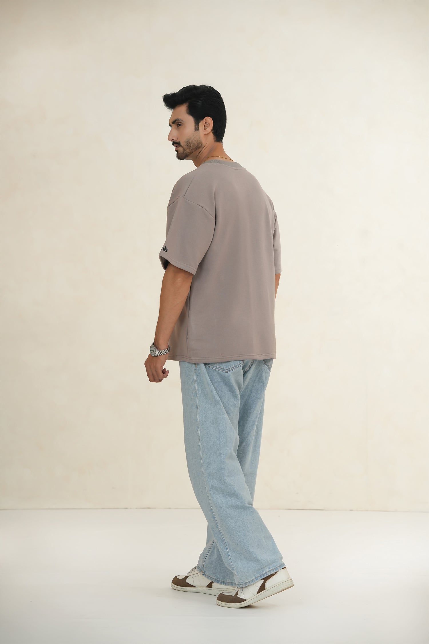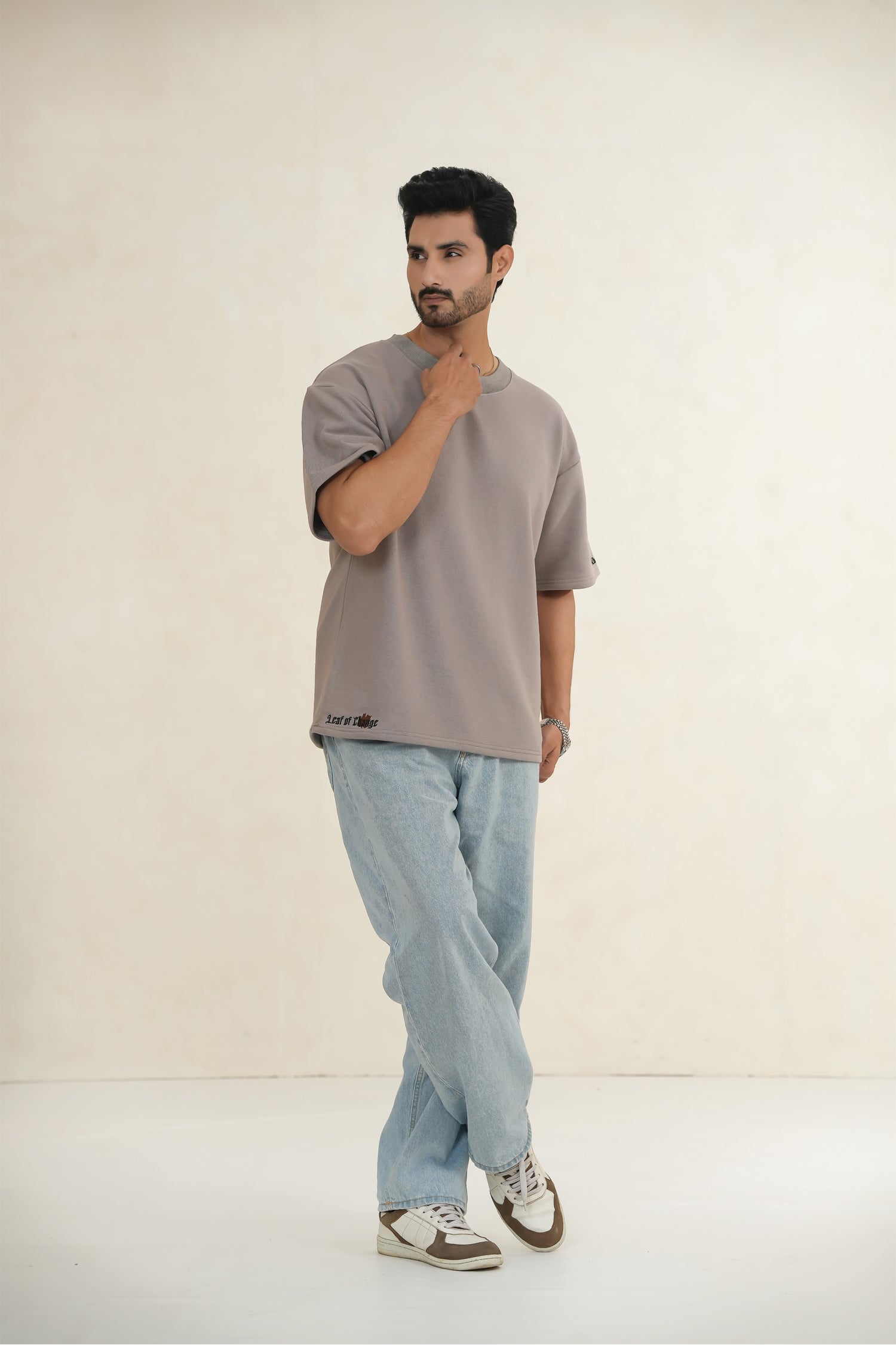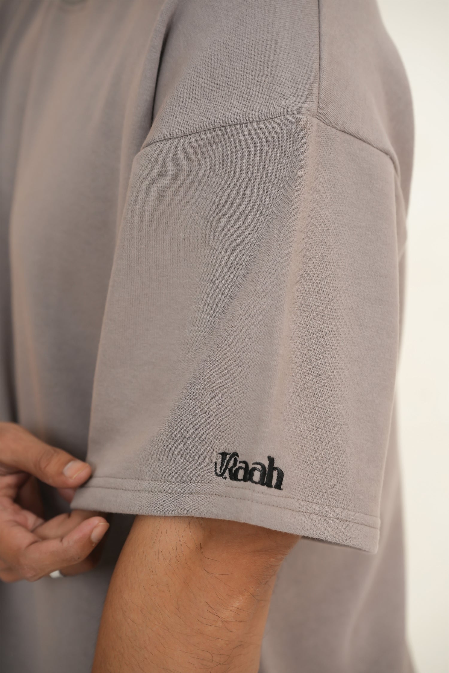 The Khamosh Rang Oversized Tee from Raah captures quiet strength through subtle tones and soft texture. Crafted from 240 GSM French Terry cotton, it offers a structured yet easy drape. Vintage-style embroidery rests near the hem — a single leaf symbolizing calm persistence — while the Raah logo on the sleeve adds a whisper of identity.